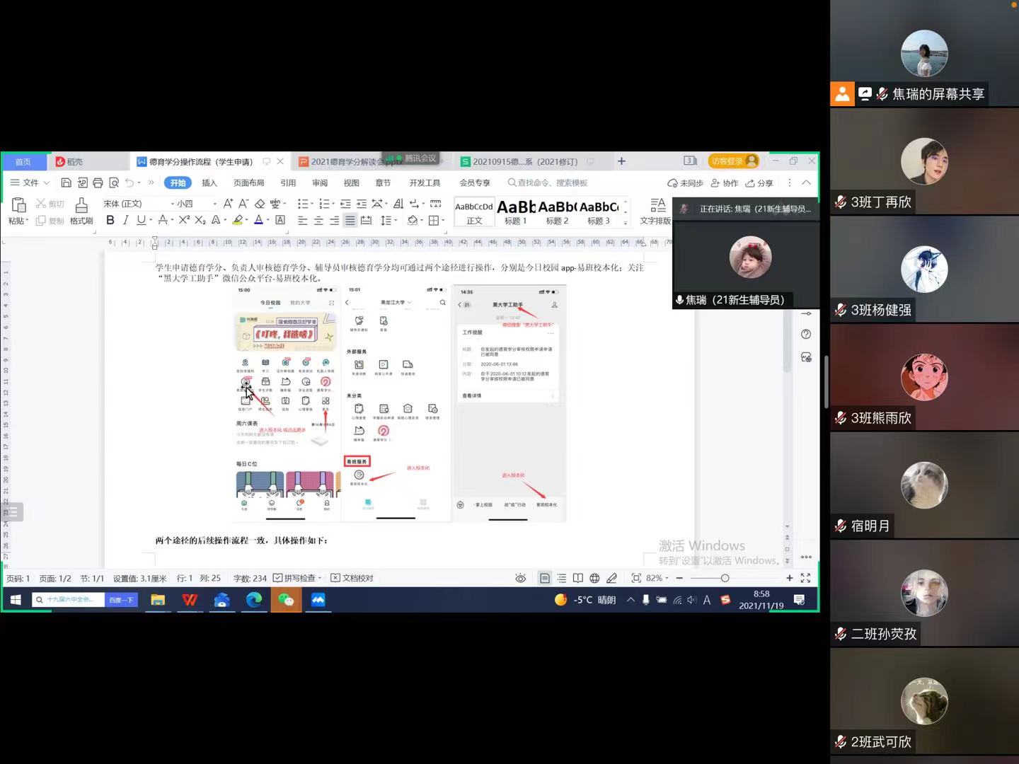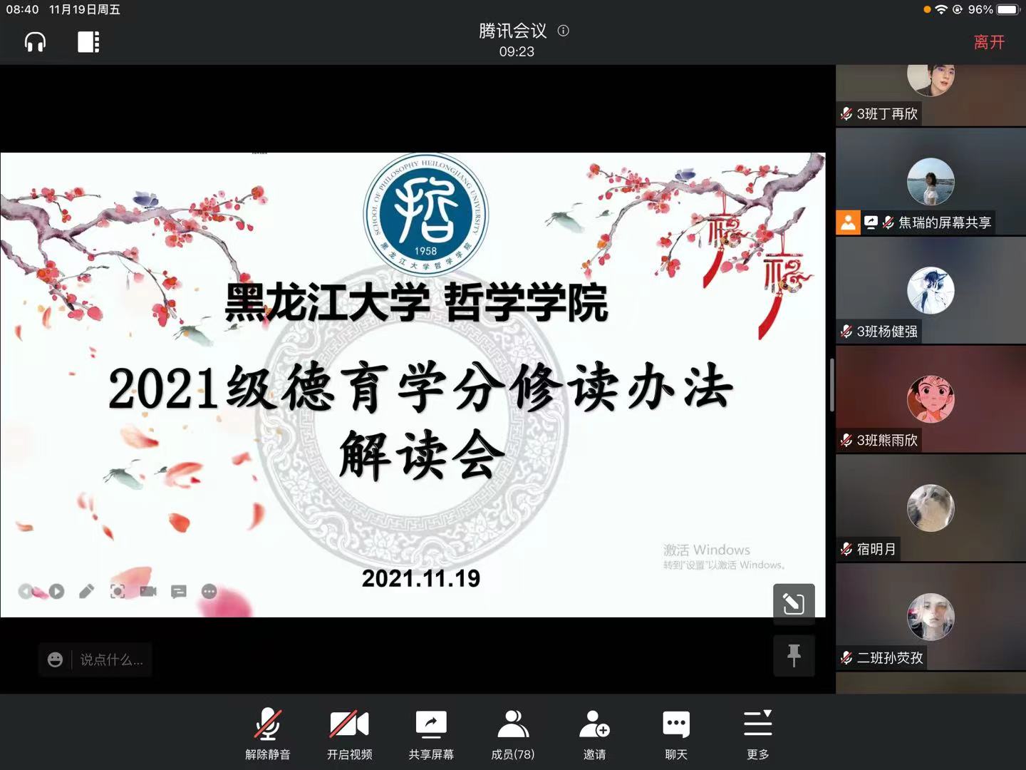 于2021年11月19日8时40分面向全体21级新生,召开了“2021级德育学分修读办法解读会”。此次会议由新生辅导员焦瑞老师主持,91大神