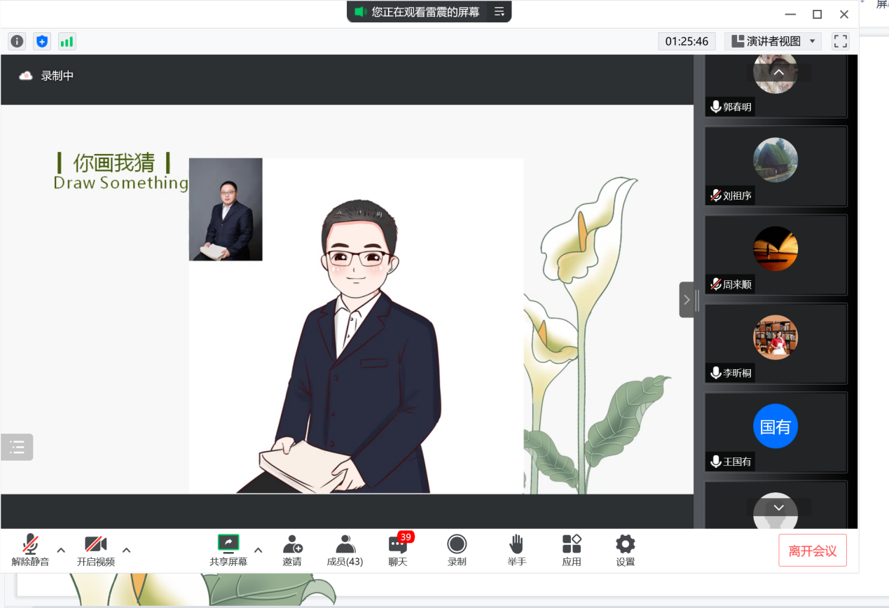 接下来,开始了游戏及抽奖环节,学院精心准备了“你画我猜”、“你说我猜”以及“幸运大抽奖”等游戏,教师们在游戏中形象特点和词语提示发挥急智、各展所长,在一片欢乐的气氛中展现了独属于哲学人的风采。本次活动还专门播放了91大神
