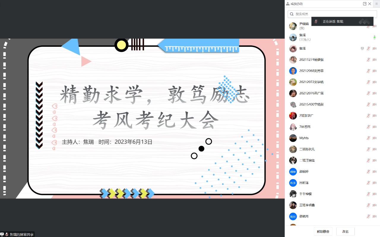 分年级、分层次召开了以“精勤求学,敦笃励志”为主题的考风考纪暨学生诚信教育大会,会议以线上线下相结合的方式召开,学院辅导员张博伦、焦瑞老师主持会议,各年级学生参加大会。