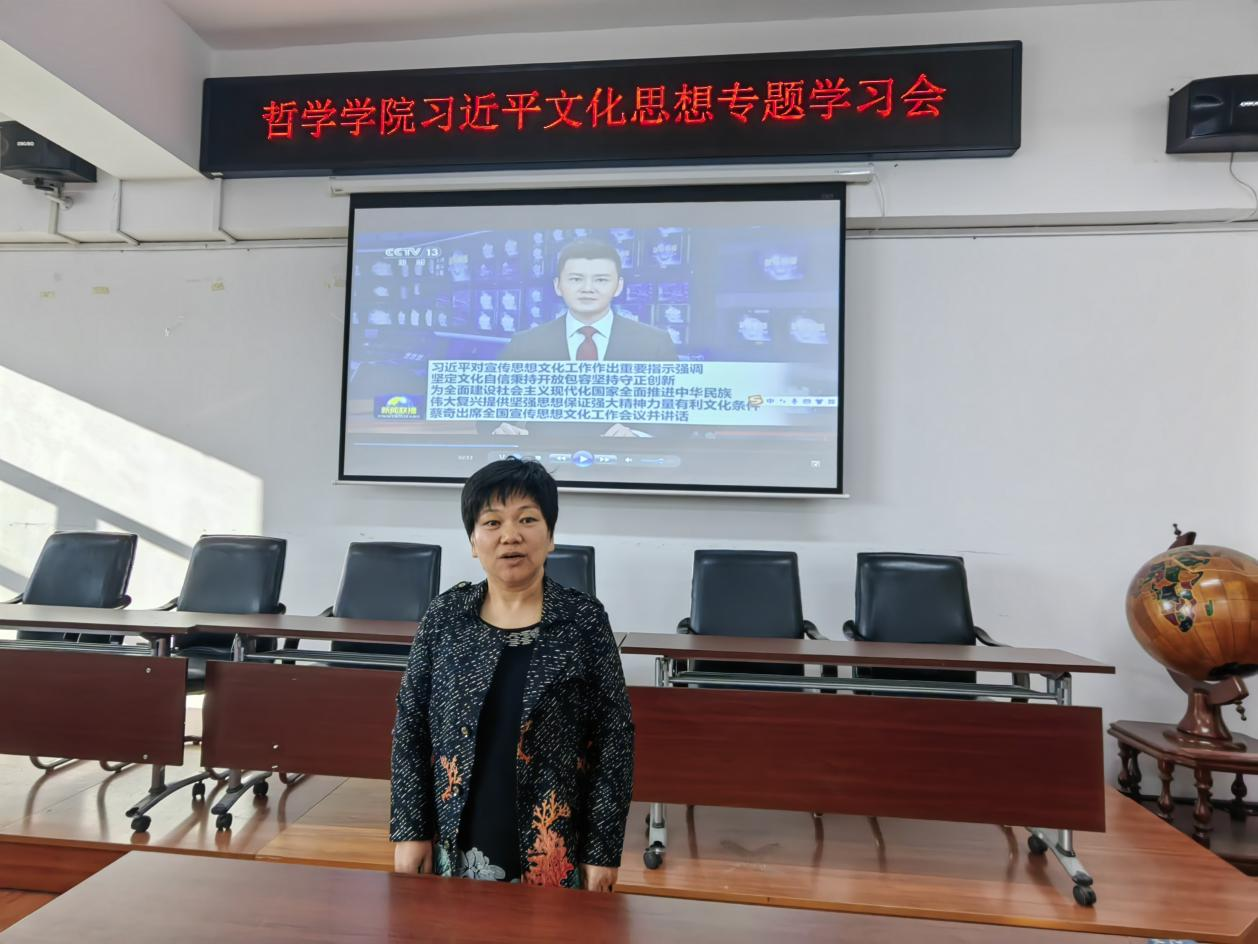 蒋红雨院长表示,全国宣传思想文化工作会议正式提出和系统阐述习近平文化思想,充分反映了习近平总书记关于文化建设理论成果在体系化、学理化方面日益完善的实际,在党的宣传思想文化事业发展史上具有里程碑意义。广大教职工要坚决确保党中央关于文化建设的决策部署落到实处,着力发挥学科优势、人才优势、平台优势等,充分利用好我院在哲学社会科学方面的重要优势和重要资源,切实加强对习近平文化思想的系统化研究和学理性阐释,为推动文化繁荣、建设文化强国作出黑大哲学人新的更大贡献。