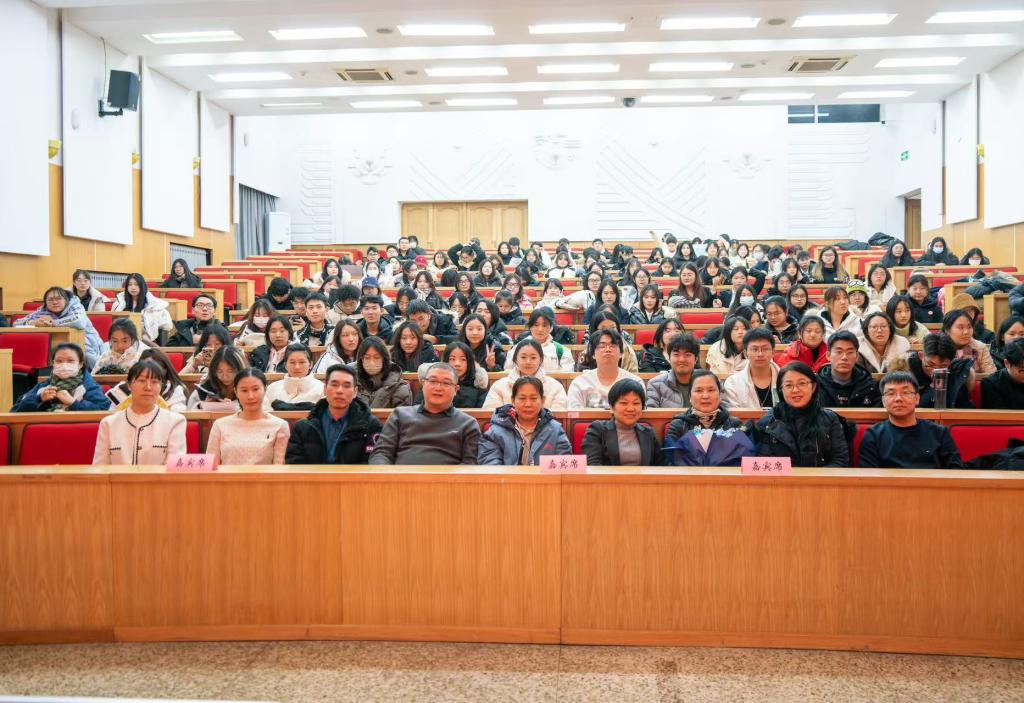 的学生以诗歌朗诵和歌曲演唱的方式向魏义霞老师表达了深深的敬意,感谢她为教育事业所做的一切。诗朗诵中,学子们将自己比作“粗糙的山石”、“黑土地上的麦粒”和“耀眼的雄鹰”,形象地描绘了在老师们的指导下,他们如何从璞玉成长为器,从麦粒成长到喜获丰收,从幼鸟到雄鹰展翅高飞。歌曲《长大后我就成了你》,唱出了同学们对魏老师的无限感激,也传达了他们立志成为像魏老师一样,能够启迪智慧、传承知识的教育者的决心。最后,热烈的掌声中同学们衷心祝愿魏老师生命之树常青,学术之树常实,桃李满天下,春晖遍四方。