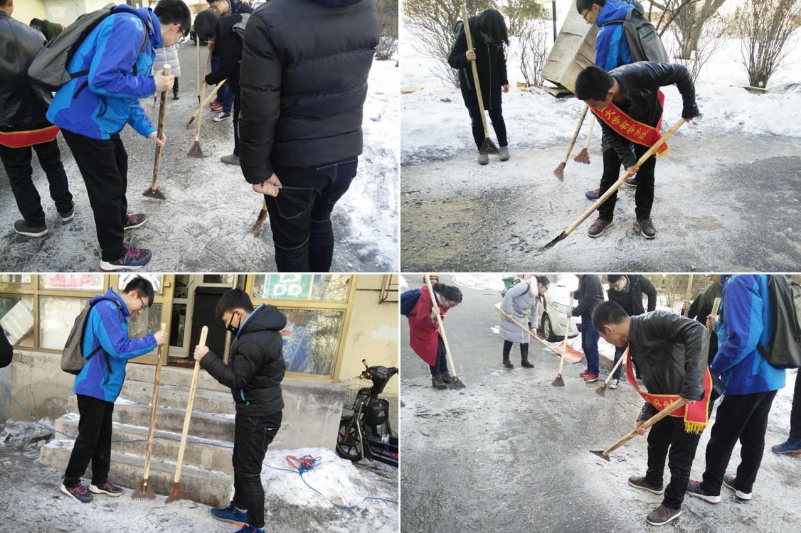 青年志愿者协会于黑大家属区开展铲冰活动,协会全体成员参加了本次活动。