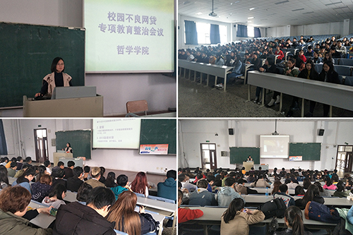会上,黄老师就什么是校园贷、校园贷的分类、不良校园贷的危害、如何防范校园不良网贷以及发生信贷危机怎么办五个方面做了详细介绍与说明。引导学生合理规划收支、不盲目攀比、理性适度消费,掌握基本金融常识,增强甄别、抵制意识和能力。随后,黄老师就大学生身陷校园贷款危机的现象进行了深入剖析。她强调,校园贷具有高利贷性质,不法分子将目标对准高校,采用虚假宣传的方式、降低贷款门槛、隐瞒实际资费标准等手段,利用高校学生社会认知能力较差,防范心理弱的劣势,诱导学生过度消费,进行短期、小额的贷款活动,但实际上不法分子获得的利率是银行的20-30倍,以此肆意骗取学生钱财。最后,黄老师带领全体同学观看了龙视《新闻夜航》节目“深度———越陷越深的校园贷”专题报道视频。视频中一个个触目惊心的真实案例,使同学们更加深刻直接的了解到了校园贷的危害,敲响了同学们思想上的警钟。