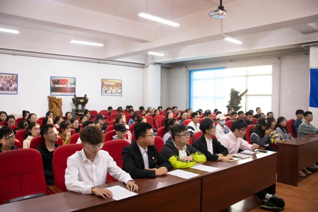 院长蒋红雨老师致辞,蒋老师指出,他在同学们的身上看到了新时代哲学学子的激情,希望各位同学能够将话语落实到行动上,以学习为中心,以成才为己任,成为一名有责任、有担当、有历史使命感的新青年。