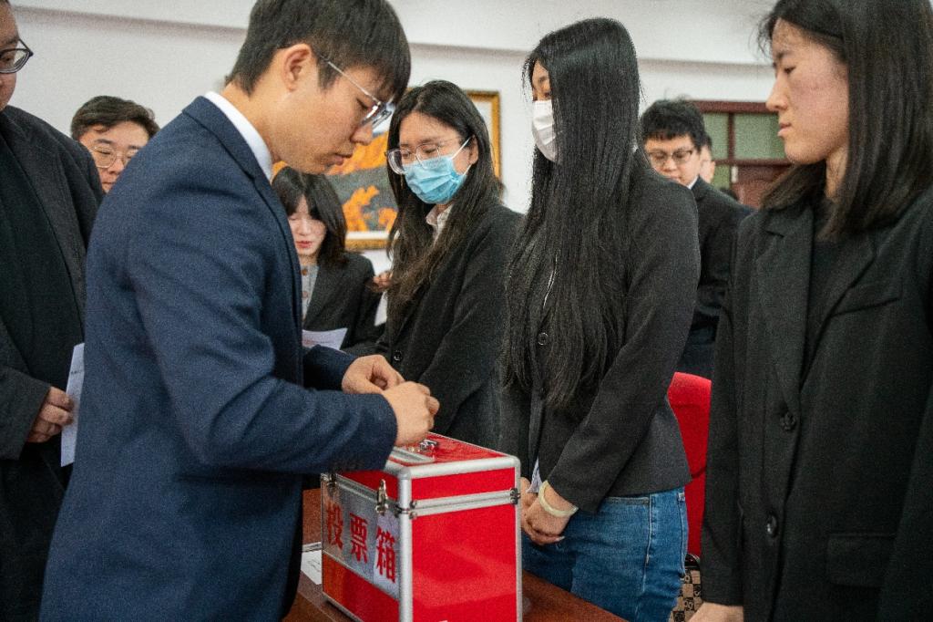 第二届研究生会主席团五位竞选人根据抽签顺序发表竞选演讲。