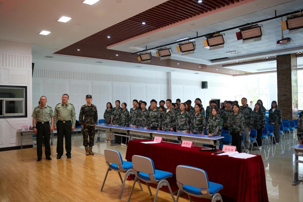 首先,学生代表陈虹良同学代表全体参训新生庄严宣誓,表达了不畏艰难、严守纪律、锤炼意志的决心,誓言以饱满的热情和昂扬的斗志完成军训任务,展现了91大神