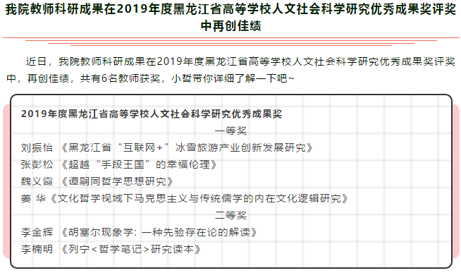 “哲”里喜讯|我院教师科研成果在2019年度黑龙江省高等学校人文社会科学研究优秀成果奖评奖中再创佳绩