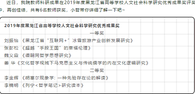 我院教师科研成果在2019年度黑龙江省高等学校人文社会科学研究优秀成果奖评奖中再创佳绩