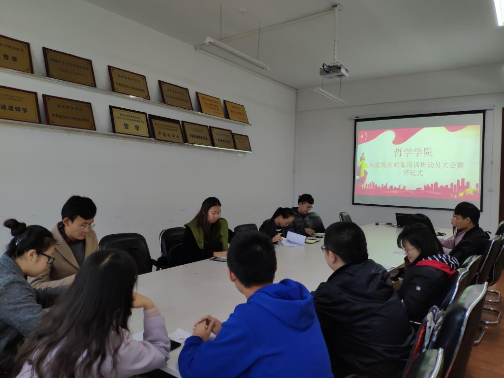 于汇文楼922召开了第五十六期入党发展对象培训班动员大会。会议由学院党总支秘书黄影老师主持,团委书记张博伦老师和全体培训班成员参加。