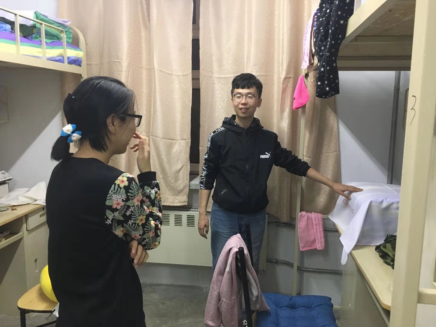 新生导员张博伦来到新生寝室走访看望了2018级新同学。