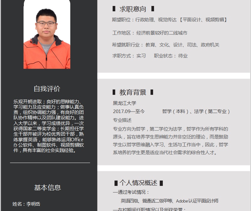 本次求职简历大赛,提高了同学们的简历制作能力以及对求职简历的重视程度,进而增强就业竞争力和职业素养;同时,引导大学生创新思维,展示同学们的创新能力和操作能力,指导学生做好职业规划,使大家在今后求职过程中更具信心,为以后的就业做好充分准备希望同学们能够以赛促能,再接再厉,在未来的求职路上设计出更好的简历,为成功就业打下坚实基础。