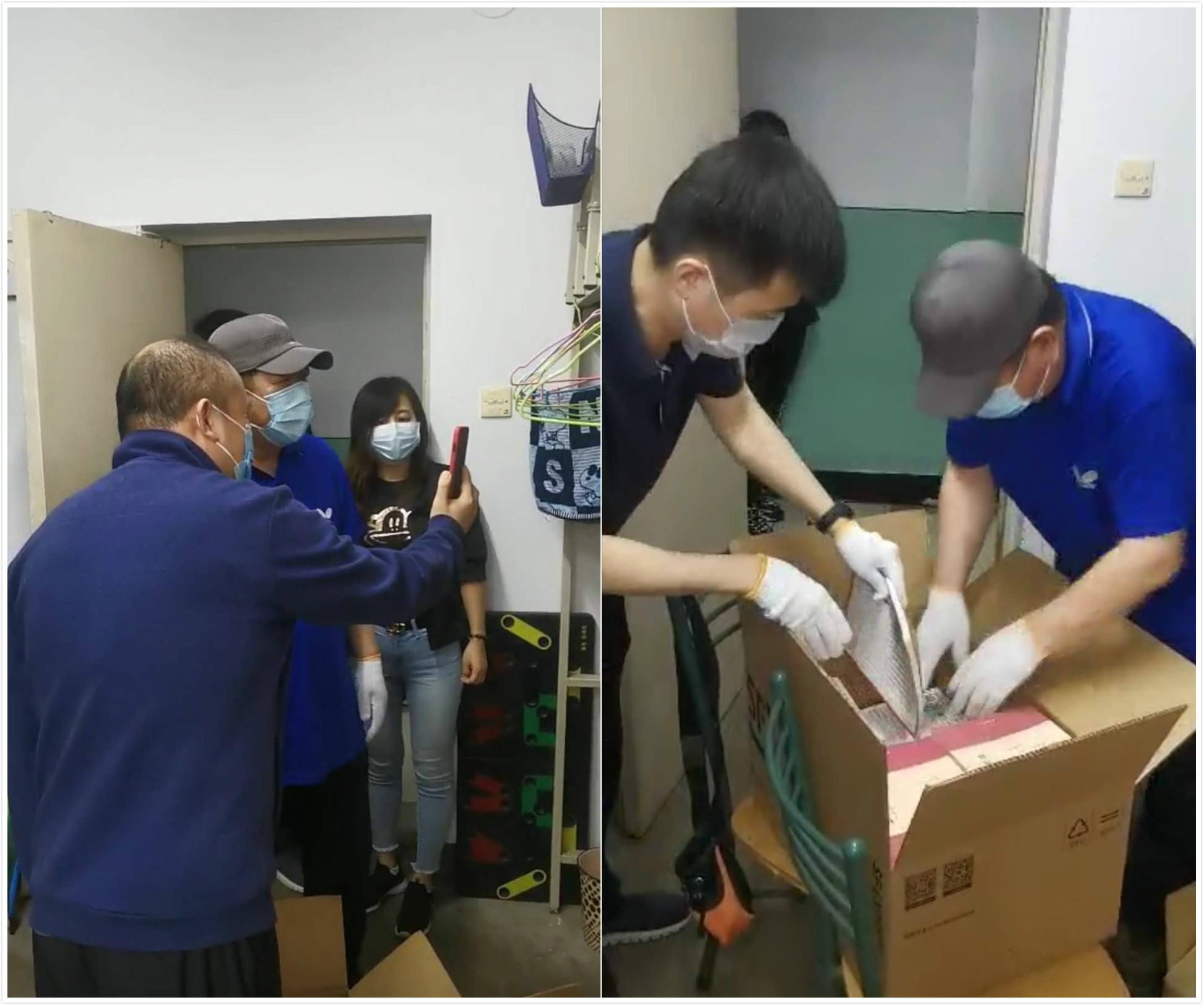 在打包行李的过程中,老师们与学生进行现场视频连线,对行李进行一一分类取舍。老师们细致认真,周到负责,一件件整齐码放,一箱箱封好邮寄,老师们挥汗如雨,露出欣慰的笑容,沉甸甸的行李包含着母校和老师对毕学子深沉的爱和浓浓的祝福。