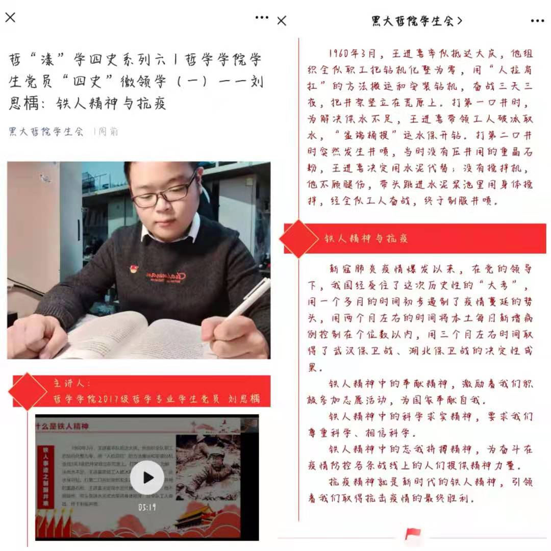 高度重视、认真布置落实“四史”学习教育工作,共开展相关主题系列活动9个,全院师生积极参与,利用网络新媒体平台,依托学院学生工作公众号,积极开展“四史”学习网络教育及成果宣传展示,共累计发布推送17期,总文字量高达12000余字,图片展示量数十张。