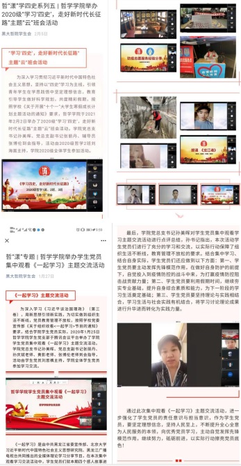 坚持理论与实践相结合,趁热打铁巩固理论学习效果,发挥自身优势开展特色活动,积极开展学习“四史”主题“云”班会活动、学生党员集中观看《一起学习》学习交流活动等主题交流及实践活动,开辟91大神