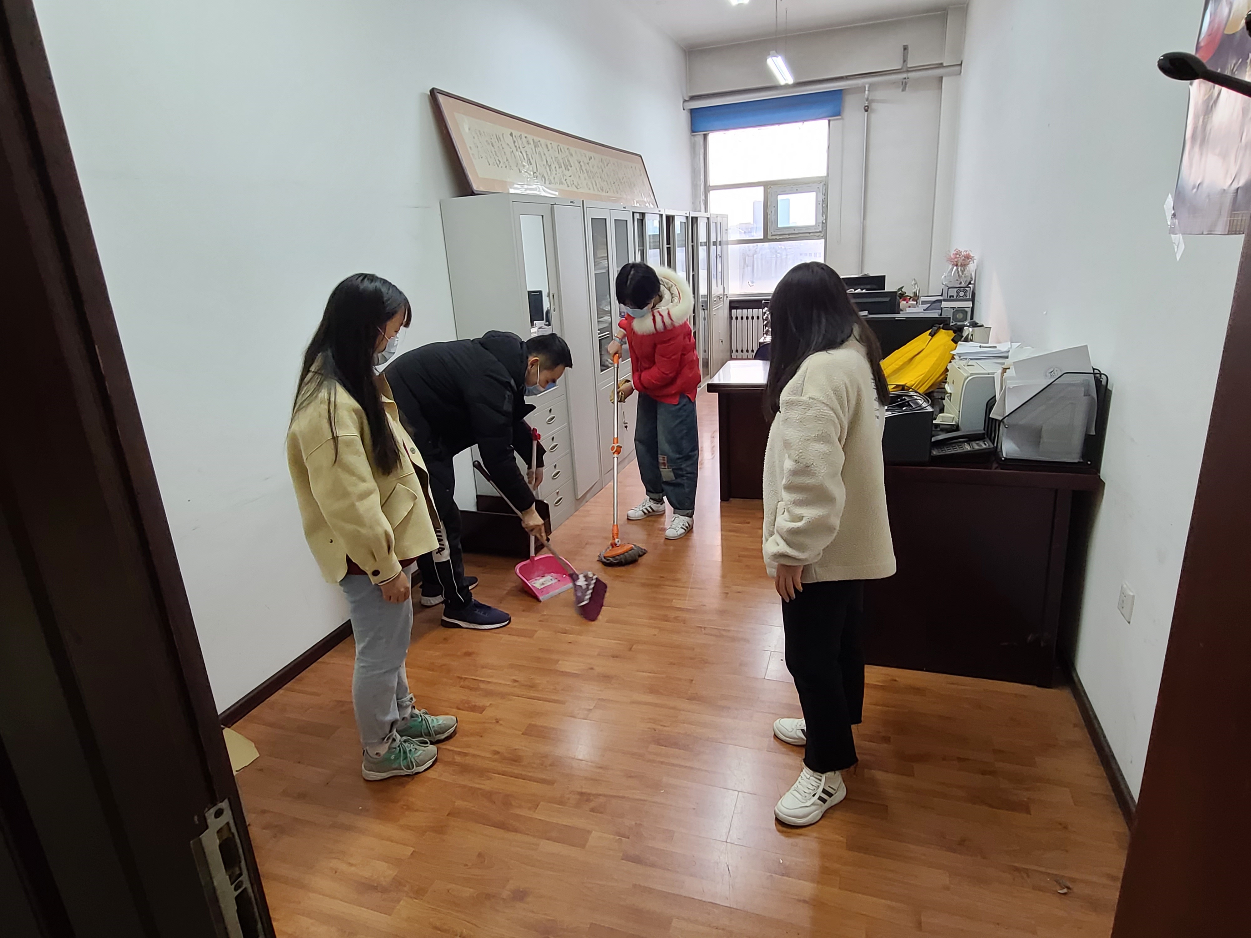 组织各年级志愿者于2021年3月10日下午前往汇文楼9楼清理学院办公区、教学区,开展清扫整理学院办公区、教学区主题志愿服务活动。