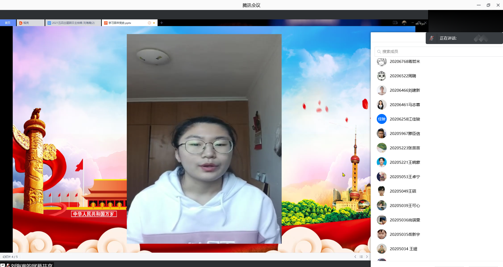 依托腾讯会议平台举办了2020级“学习百年党史,传承五四精神”主题团日活动。学院团委书记、辅导员张博伦出席活动,学院2020级全体学生参加。
