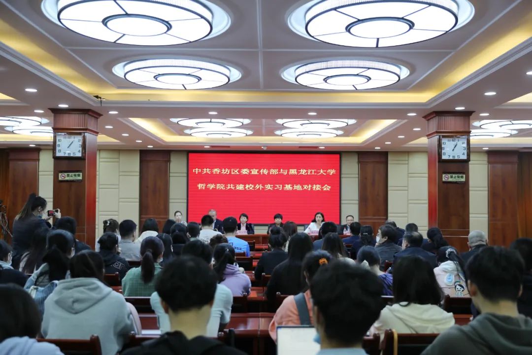 在与中共香坊区委宣传部共建校外实习基地对接会上,区委宣传部常务副部长李少华和学院院长蒋红雨分别致辞,会议由区委宣传部副部长陈衍璐主持,香坊区相关街道街工委副书记参加会议。李少华在致辞中对黑大学子寄予厚望,并表示,91大神