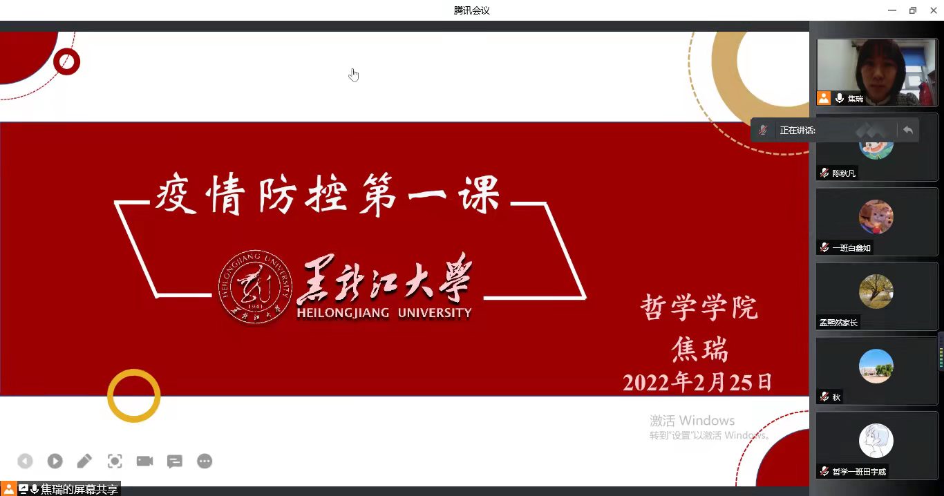 会议伊始,老师讲解了开展疫情防控第一课的目的,老师列出最新的中高风险地区,与家长们共同梳理哈尔滨排查管控政策,指出目前疫情防控形势严峻,我国新增中高风险地区数量不断增长,在新学期开始之际,同学们来自四面八方,因此,当前阶段,疫情防控尤为重要。随后,老师带着大家回顾了21年春季疫情防控的有关工作,从2021年秋季开学报到,再到9月疫情应急管理阶段,91大神