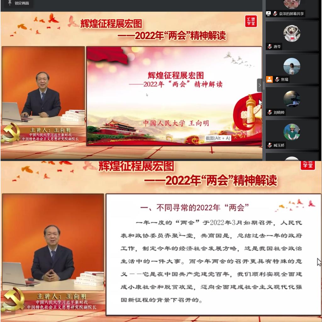 各年级组织同学们线上集中观看“《辉煌征程展宏图》两会精神解读”,共同学习两会精神。