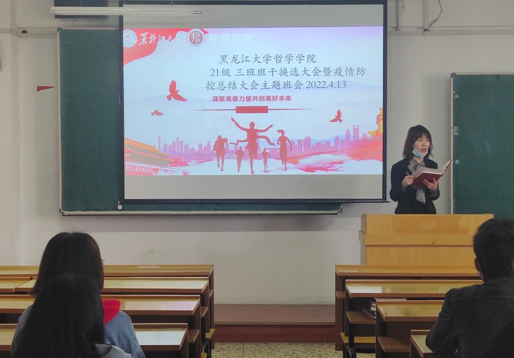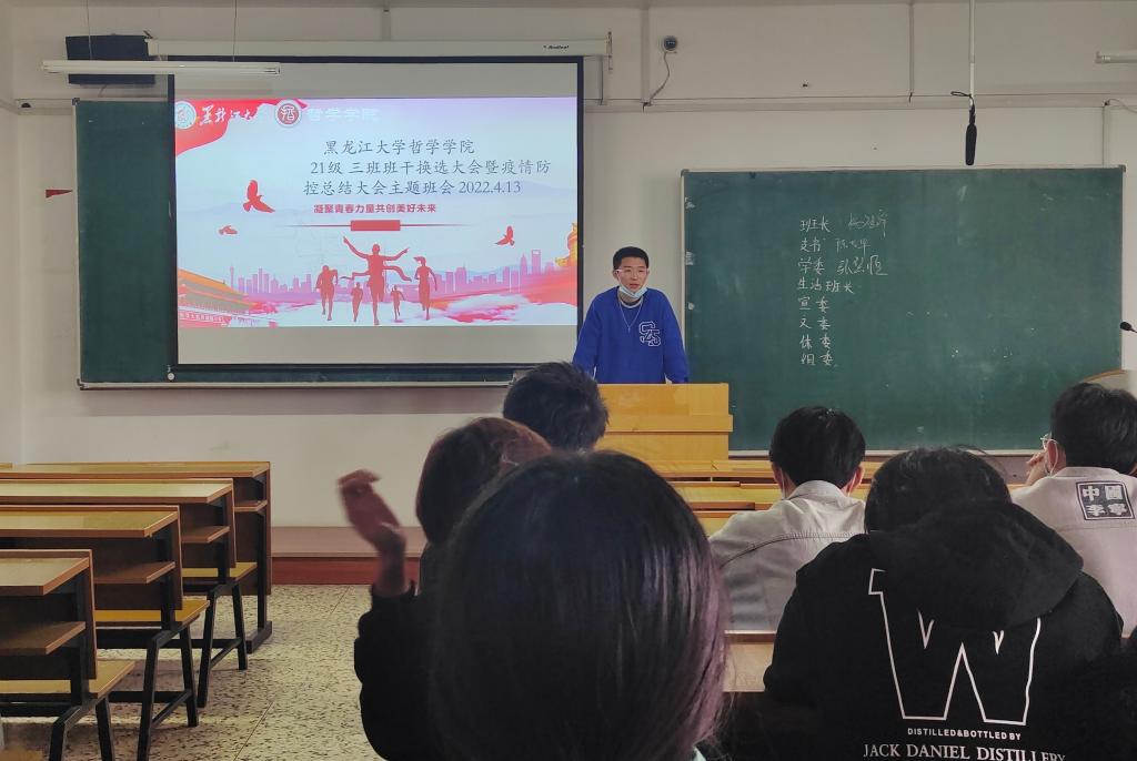 21级分批次分班级组织“责任在心间,青春向未来”班干换选班会。