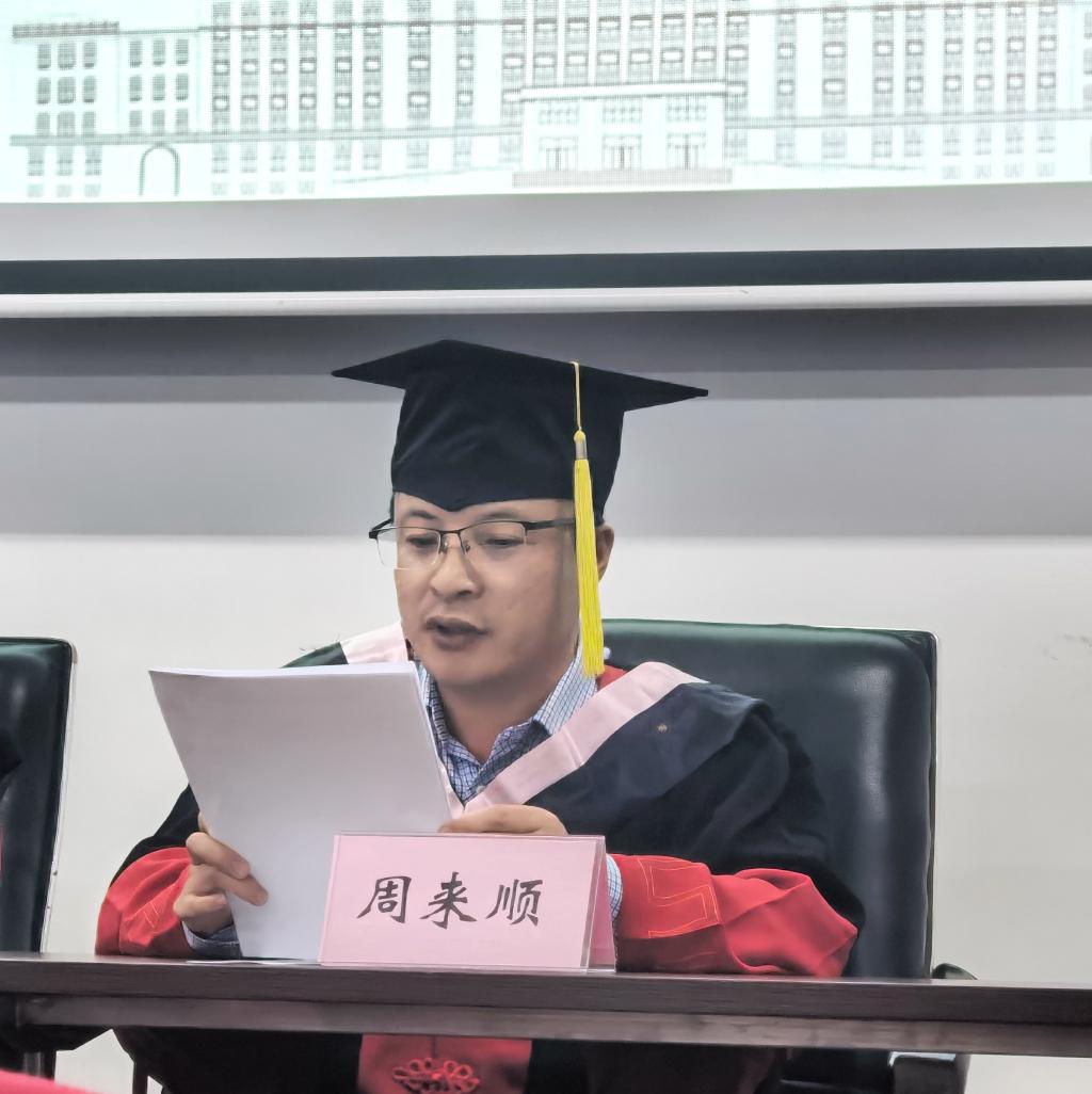 会议第二项,学院副院长周来顺老师宣读了毕业资格审查报告和学位审批报告,与会领导老师为毕业生进行毕业证书授予及学位颁授。