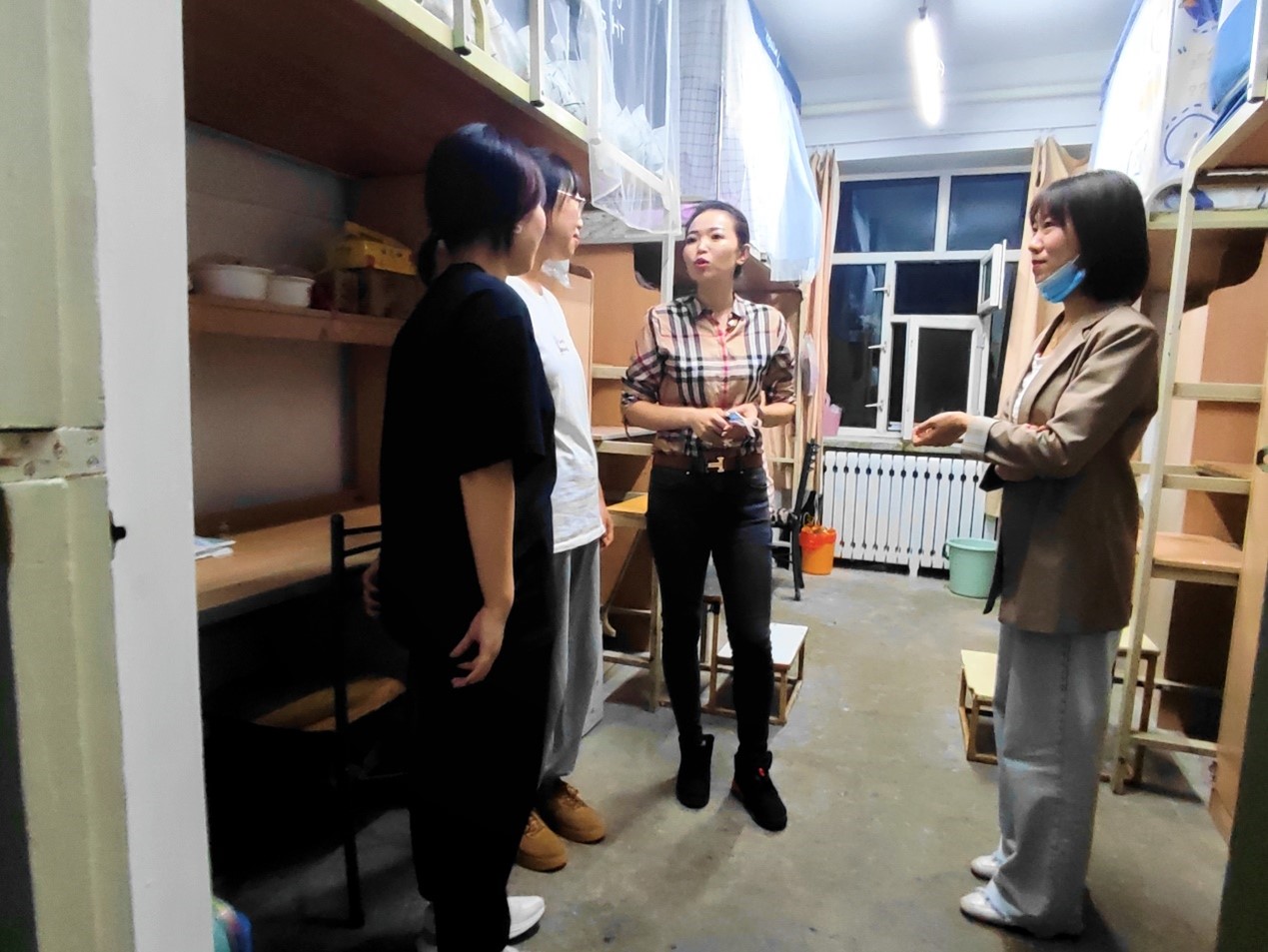党总支副书记张丽丹老师和全体辅导员老师一同走访各年级学生寝室,对同学们的学习、生活以及思想方面进行了亲切交流。张丽丹老师和辅导员老师们认真倾听了学生们对于新学期的展望和规划以及开学以来遇到的困难,详细记录了同学们的开学难题并提出了相应的解决方法。走访最后,张丽丹书记和辅导员老师们向同学们宣传了国家贷款资助政策及学费代偿相关政策,提醒同学们如果家庭困难可以提出申请,在毕业季要诚信还款,防止对自己的个人征信产生不良影响。此外,书记与老师们还嘱咐同学们要严格遵守学校疫情防控相关规定,做好个人防护,在保障自身健康安全同时,尽快调整状态,制定新学期规划,以饱满热情投入到新学期学习生活当中。