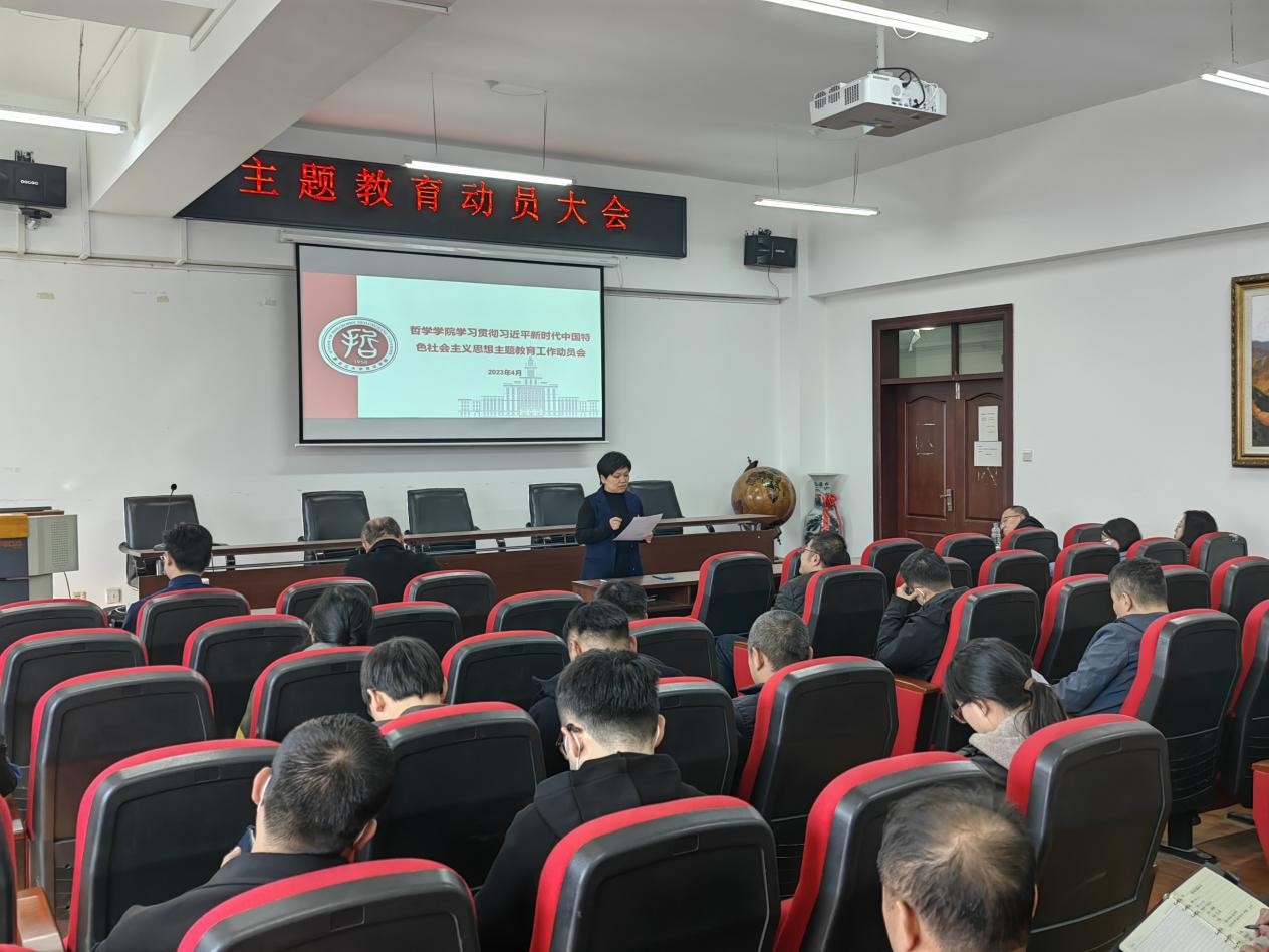 于汇文楼937室召开学习贯彻习近平新时代中国特色社会主义思想主题教育动员大会,传达学习贯彻习近平新时代中国特色社会主义思想主题教育工作会议上的重要讲话精神,布置学院下一步主题教育具体工作,着力引导全院师生深刻感悟党的创新理论的思想伟力、实践伟力和真理伟力,学院全体教工及部分学生代表参加本次动员会。