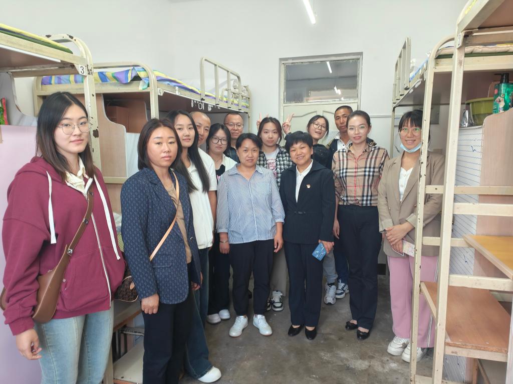 党总支书记孙美晖、院长蒋红雨、党总支副书记张丽丹、副院长周来顺、2023级新生辅导员孙庆斌及2021级辅导员焦瑞,于9月9日下午17时深入新生公寓楼进行走访慰问。