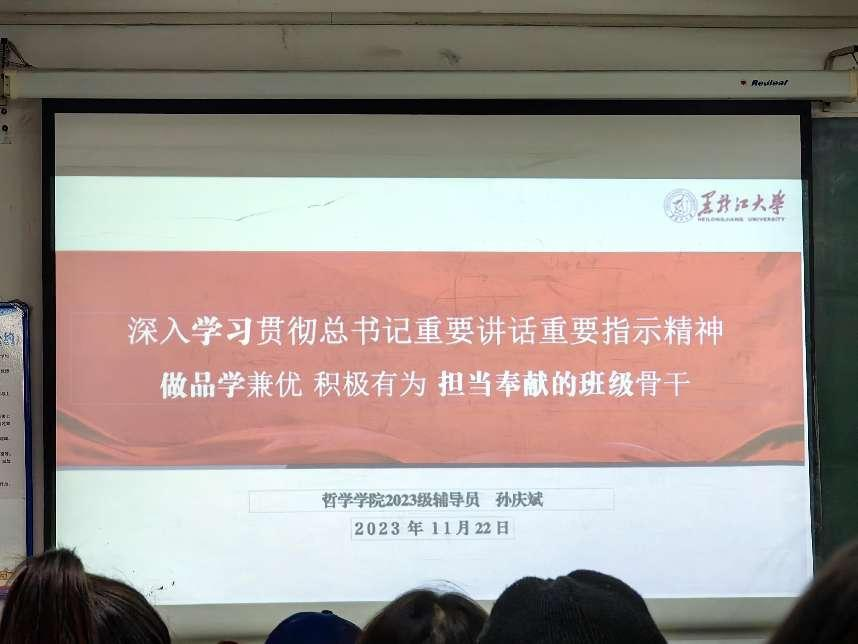 在汇文楼550教室以“深入学习贯彻总书记重要讲话重要指示精神,做品学兼优积极有为担当奉献的班级骨干”为主题召开了班级骨干培训研讨会,23级的学生干部、班级骨干和全体学生参会培训,培训研讨会由23级辅导员孙庆斌主持。