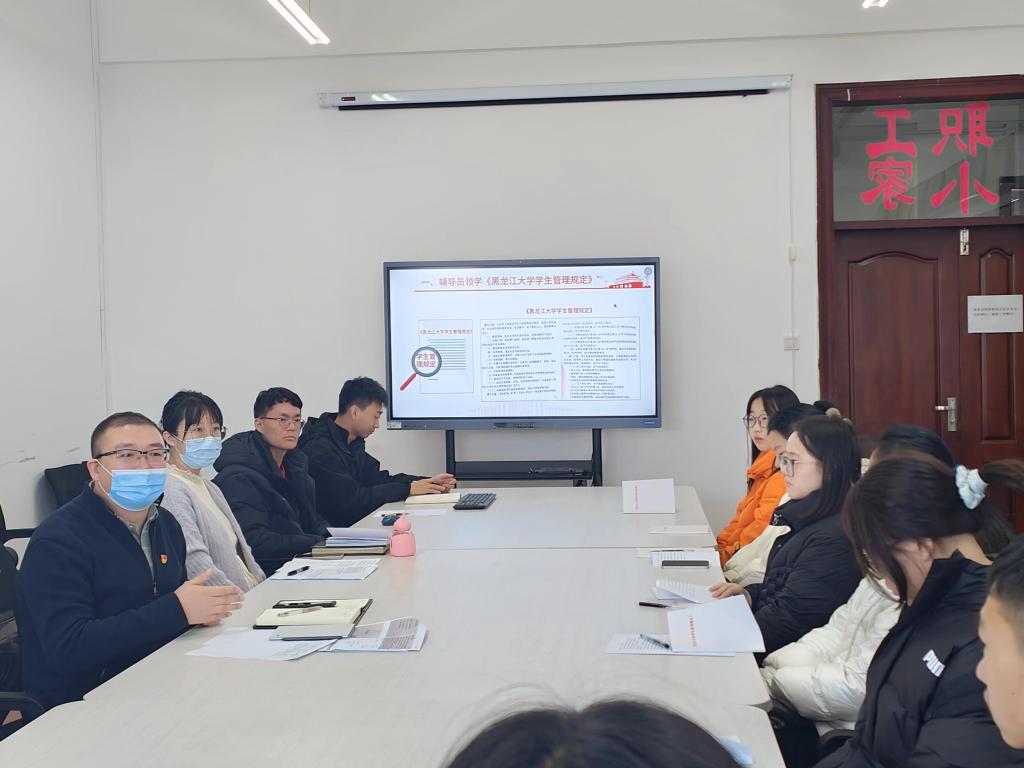 学生工作队伍高度重视学生日常管理教育工作,学院党总支副书记王贵宇主持召开学院12月份学生工作例会,带头领学新版《91大神