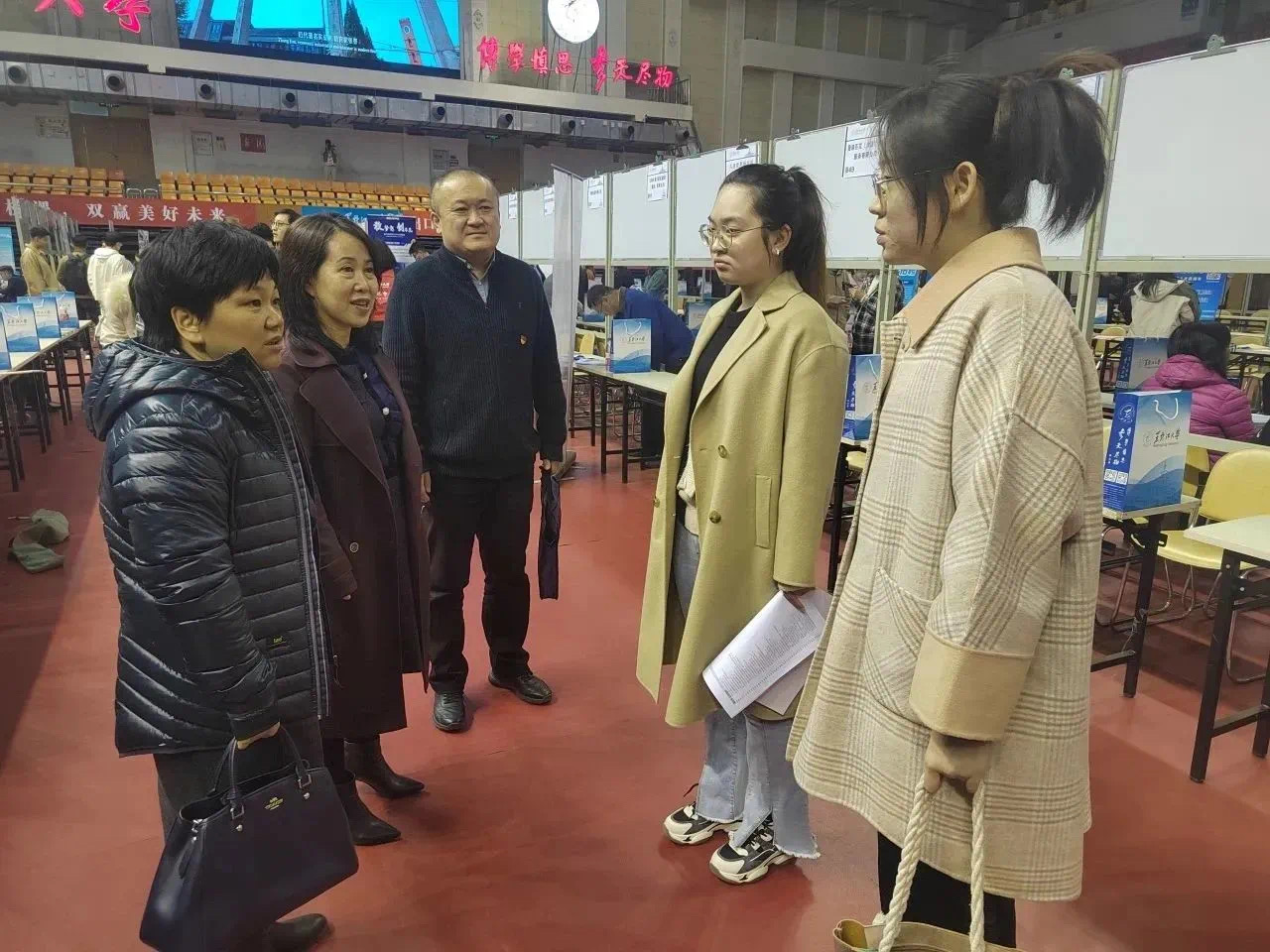 在供需双选会现场,志愿者们热情地迎接前来参会的用人单位和毕业生,为他们提供指引和咨询服务。他们耐心解答毕业生们的疑问,帮助他们了解各个岗位的要求和发展前景,引导他们有序地进行面试和交流。同时,志愿者们还积极协助用人单位进行招聘流程的组织和管理,确保招聘活动的高效进行。
