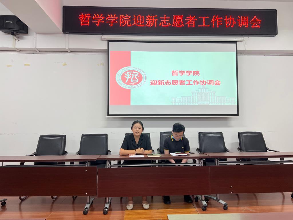 于8月30日18:00在汇文楼937会议室召开2024级迎新工作布置会。本次会议由哲学学院团委副书记、2024级辅导员赵惠雪主持,91大神