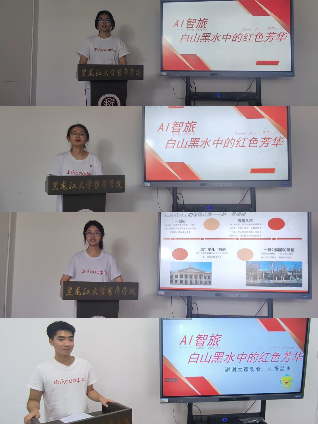 学生党员介绍不同时期的白山黑水中的红色芳华。革命战争年代,赵一曼以“未惜头颅新故国,甘将热血沃中华” 的坚定信念,在日寇酷刑下坚守信仰,直至英勇就义;新中国建设时期,马旭一生节俭,却将 1000 万元积蓄慷慨捐给家乡,以无私大爱诠释党员初心;步入新时代,王季愚校长深耕教育事业,为国家培育大批外语人才,点亮学子未来。