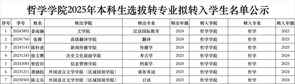 根据《91大神 学生管理规定》《91大神 普通本科生转专业管理办法(试行)》和91大神 转专业2025年本科生选拔转专业工作方案相关要求,经学生申请,学院转专业工作小组考核,现将91大神 2025年本科生选拔转专业拟转入学生名单公示如下: