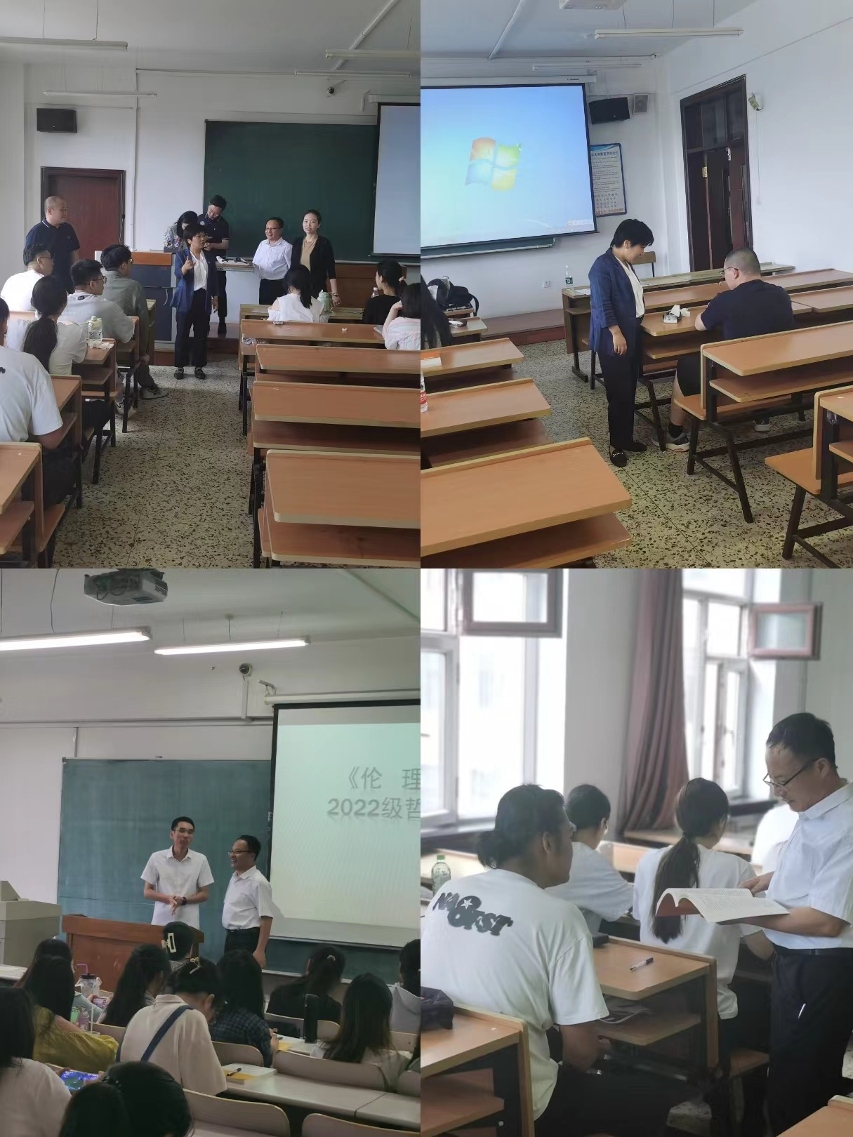 2023年8月28日至9月1号,学院教学工作检查组先后赴汇文楼、3号教学楼,检查线下学生上课情况。检查中发现,我院学生精神面貌良好,出勤率高,课堂气氛活跃。教学检查组组长蒋红雨院长、孙美晖书记肯定了同学们的学习状态,就专业课学习、生活情况等与学生们进行了沟通。检查组也对同学们提出要求和期待,希望新大家能够坚定目标,提高专业素养,养成良好学习习惯。教学检查组副组长周来顺与同学们就课程难度、学习方法、教材使用等进行了交流,特别强调了哲学史与原著在专业课学习中的重要性。