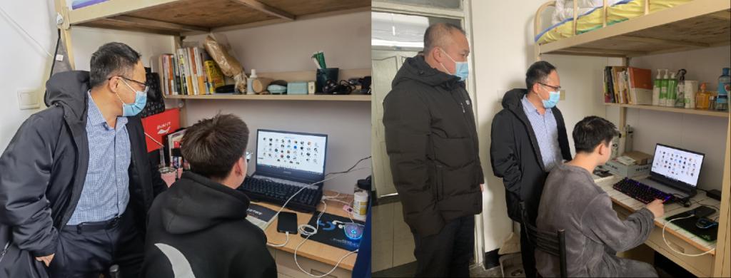 随后,按照疫情防控要求,学校教学转为线上教学,我院领导班子及时开展线上教学检查。在检查过程中,老师们同时宣讲了国家助学贷款相关政策以及时还款、避免逾期等学生资助政策相关知识,也为有需要贷款的学生提供了一些贷款方面的知识,让其有了一定的了解。同学们在以后的贷款上,也将加强诚信意识,提高法律意识。2022年3月2日,学院检查组深入学生寝室,与同学们展开线上学习的交谈。走访寝室时,领导班子积极询问学生线上学习是否有困难,以及是否适应线上学习的状态。随后,领导班子对学生们提出建议与希望,孙美晖书记强调,同学们要积极与老师互动,增添课堂乐趣,保持良好的精神状态;蒋红雨院长指出,老师们会高度重视教学工作,保障大家的学习质量与健康安定;周来顺、高来源副院长希望同学们努力学好各门课程、打牢基础,特别是要加强哲学史与经典著作的学习与研读,不断提升自我。张丽丹副书记强调,同学们需严格按照学校疫情防控观察期相关要求,遵守相关疫情管理与学习纪律,以保障学习、生活安全、有序进行。