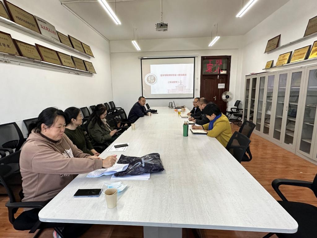 学科专业一体化建设基层调研系列之五,“走进文化哲学”活动在汇文楼922进行。学院领导班子成员与文化哲学教研室全体成员以学科专业一体化建设、研究教学型学院建设为背景,就学院的发展定位、未来发展规划、文化哲学研究团队建设、专业课程设置等内容进行了深入交流。
