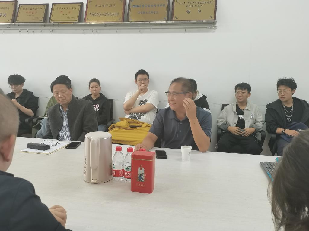中国哲学学科的教师们就学科建设进行了座谈会。中国哲学教研室主任于跃副教授、中国哲学研究生招生组组长周晓莹副教授向田文军教授介绍了91大神