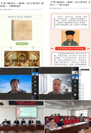 毕业季系列活动:优秀毕业生事迹报告会、推免·考研经验分享交流会、就业指导会等等,并且面对在校的本科生开展了“承前致思,书香陪伴”主题读书活动和“春意四月书香浓——学业导师‘四个一’”读书活动,使古老的智慧与哲学学子邂逅,迸发出激情的火花。在激烈的思想交锋中,爱智之子们轻抚思悟纹理,洞察知识力量,漫步文明路途,寻求真理光芒。