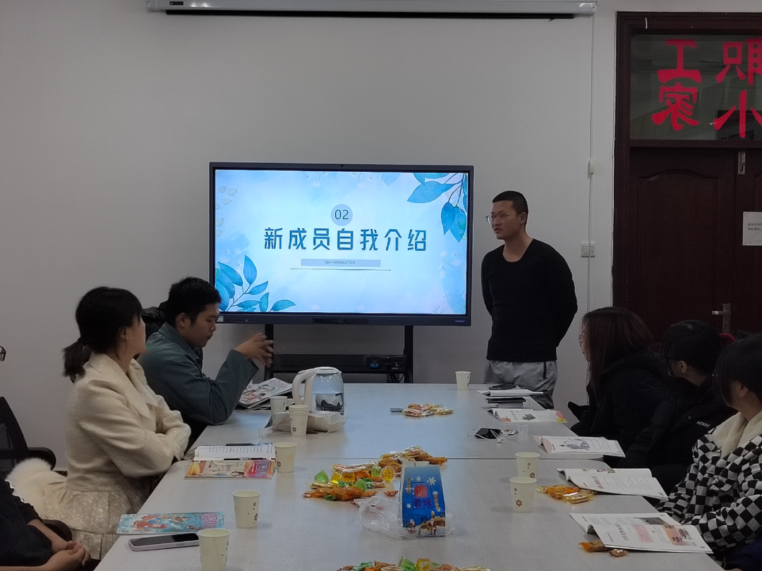 会议开始之前,薛江波老师将所带书籍分发给各位成员,让大家对于书籍有一定初步的了解。会议上,唐苓首先对新成员的加入表示欢迎,向同学们系统性地介绍了团队的主要内容、成果展示及未来规划。会议第二项,由新老成员们自我介绍并相互认识,表达对团队的认识与自身的感受。
